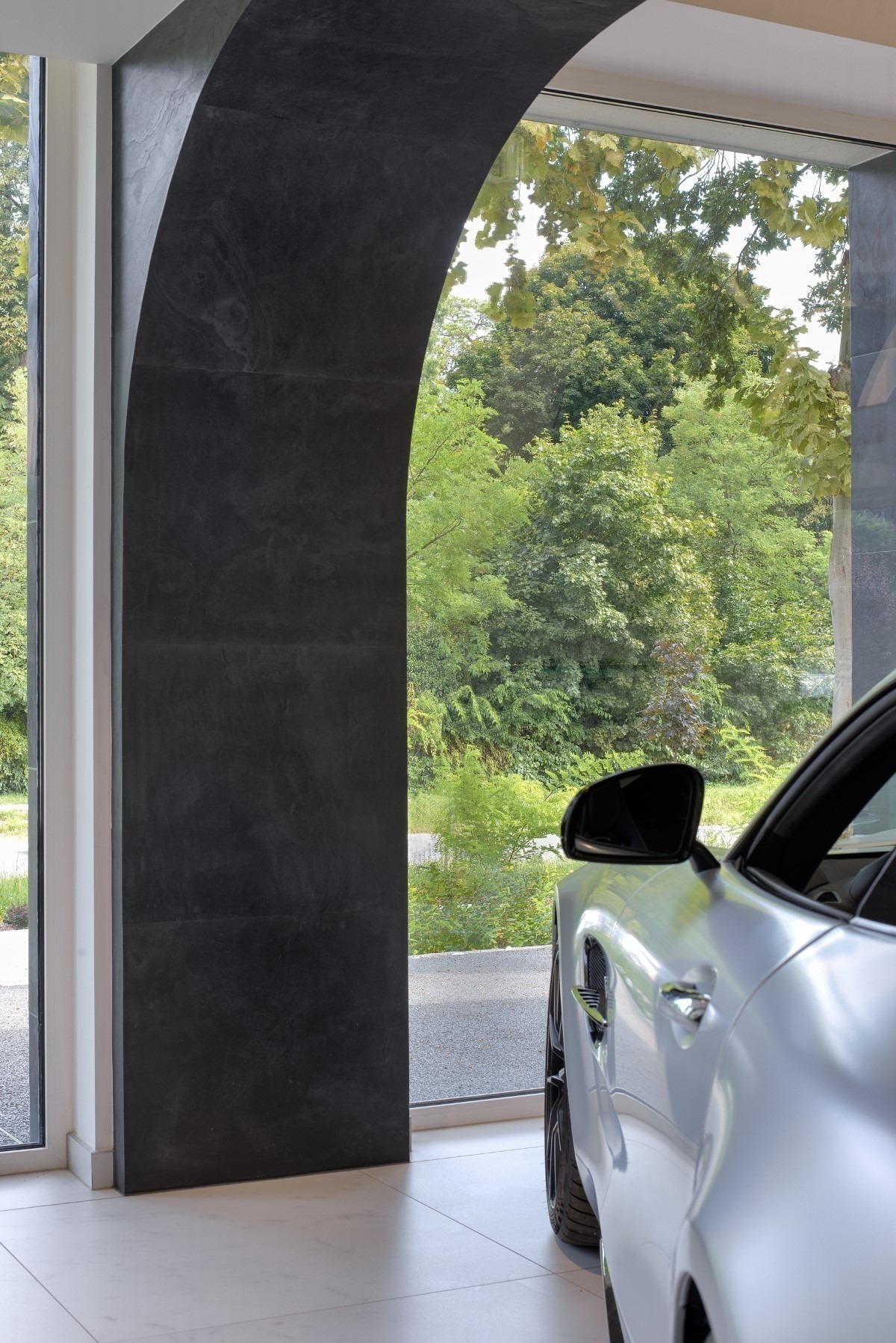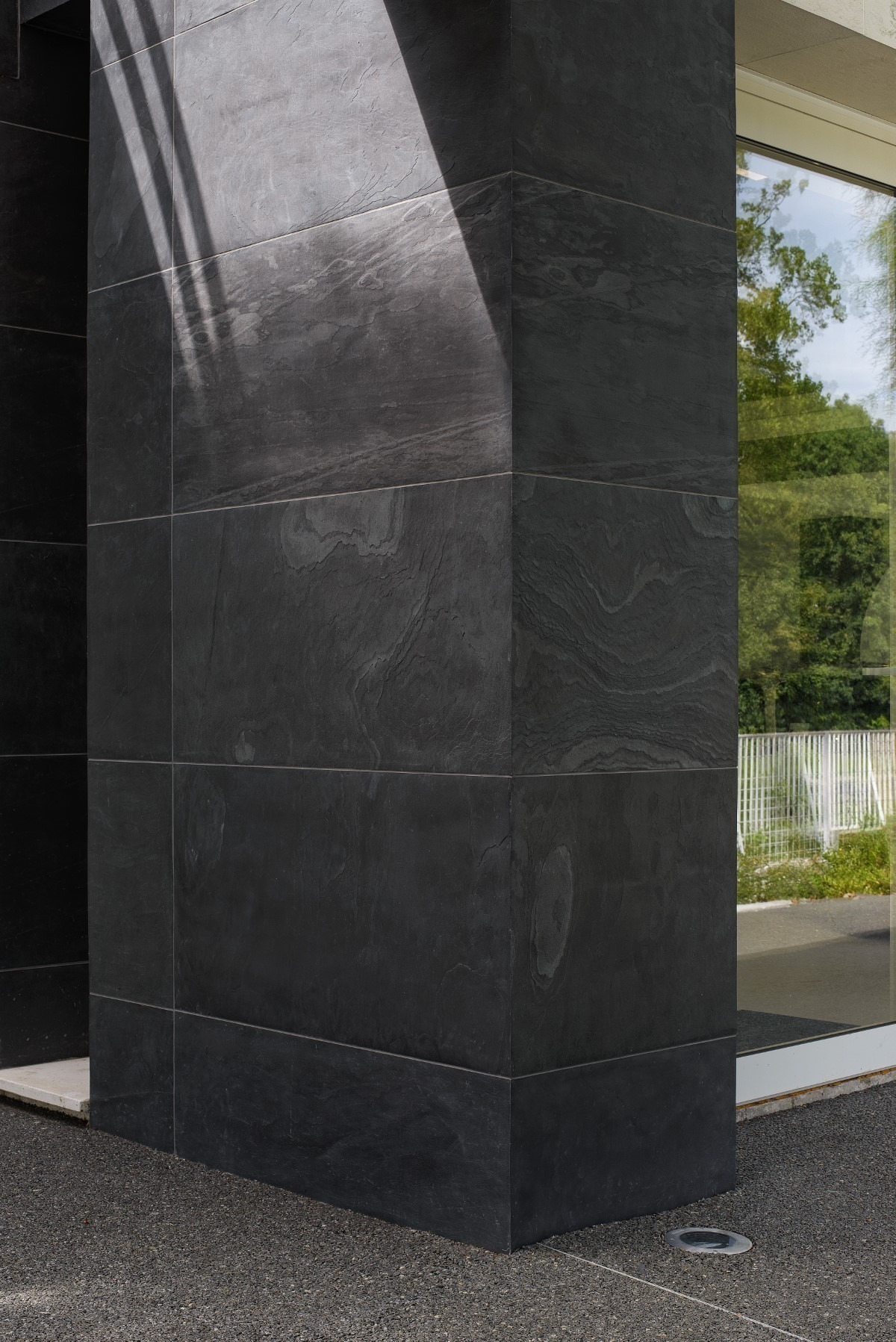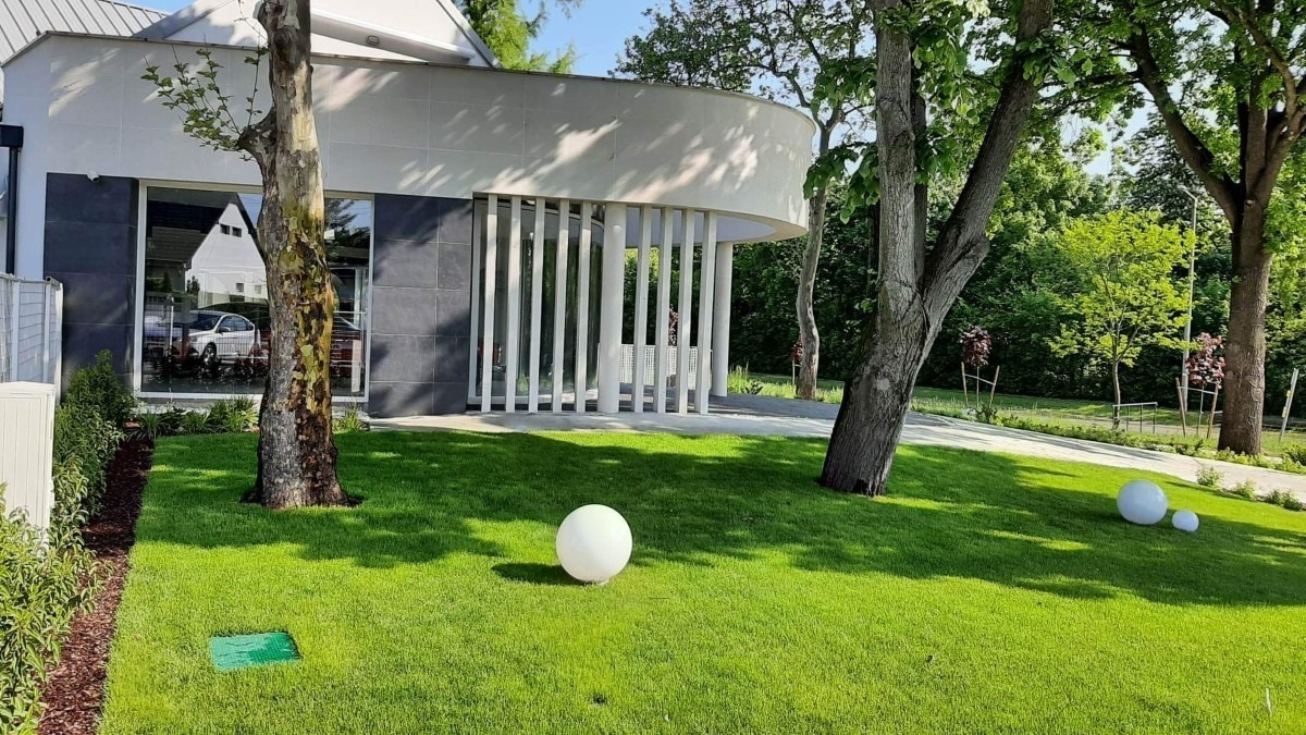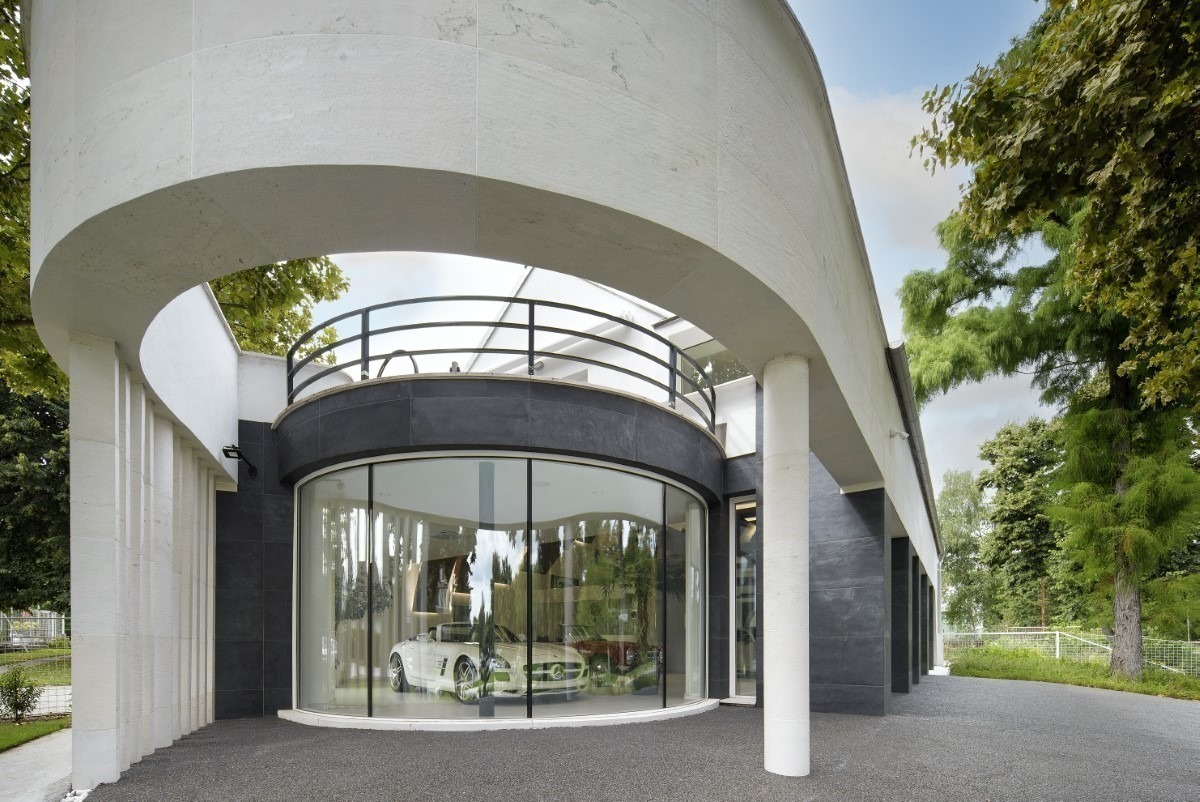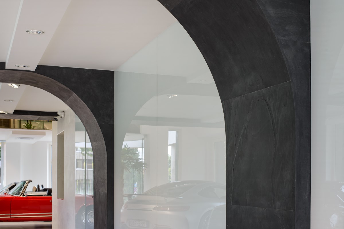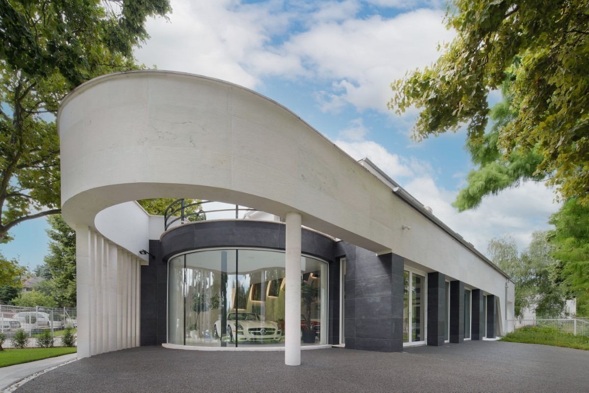 A gödöllői autószalonra a referenciáink között különösen büszkék vagyunk. A tulajdonos kívánsága a színek harmonizálása volt, mind kül-és beltéren. A kültereken végül a Black csillámpala és Crystal White mészkő kombinációja mellett döntöttünk közösen, melyek kombinációja szépen beleillik a környezetbe, és jól kihangsúlyozza az épület adottságait.