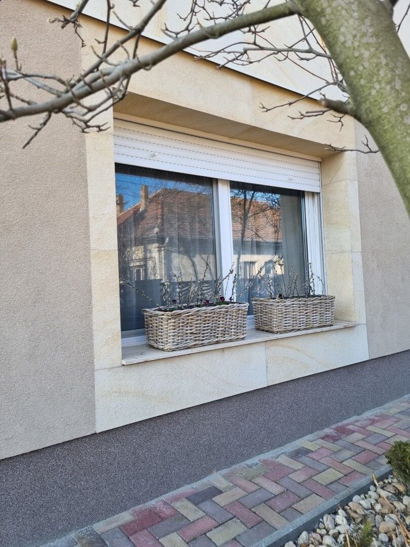 A homokkő struktúrákról önkéntelenül is a nyári napsütés és a nyaralások emlékei jutnak az eszünkbe. A homokkövet közelről nézve jellegzetes rétegek alkotják, ezeket a rétegeket pedig remekül kirajzolódó egyedi, vonalas minták dobják fel. Mintha csak a tenger hullámozna! Jól megfigyelhetőek ezek a hullámzást idéző vonalak a Kistokajban felújított családi házon is, ahol Sand Travertin színű, standard méretű Lite Stone lapokkal és csiszolt műkő párkányokkal varázsoltuk karakteressé az épületet.