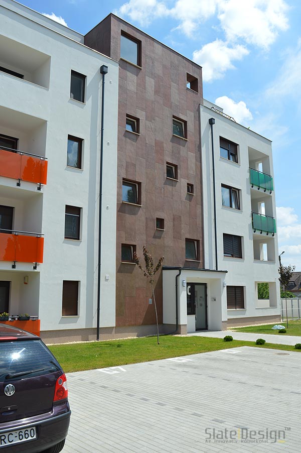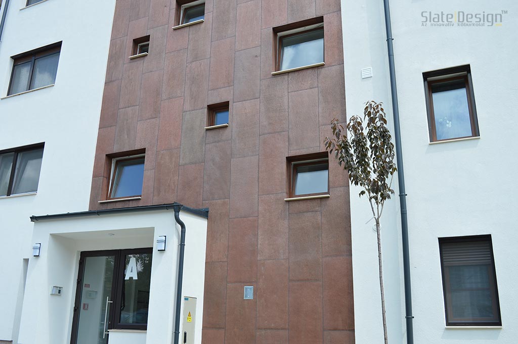 Szombathely belvárosi zöldövezetében helyezkedik el a Krúdy Lakópark, mely egyszerre modern és praktikus. Az I. ütemben épült 39 lakásos lakókomplexum lépcsőházi homlokzatára elegáns burkolatot álmodott meg az építész, ugyanakkor a nagy felület miatt fontos volt a költséghatékonyság is. A megoldást a Copper New struktúrájú LiteStone ultravékony csillámpala burkolat jelentette, mely vörösréz csillogásával különleges benyomást tesz környezetére.