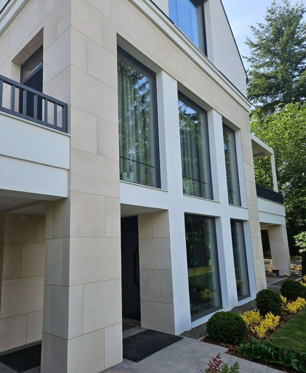 A White homokkő különösen ajánljuk:modern és minimalista homlokzatokhoz,világos vakolattal vagy sötét nyílászárókkal kombinálva. Olyan épületekhez, ahol a letisztult forma és a természetes anyaghasználat egyaránt fontos.