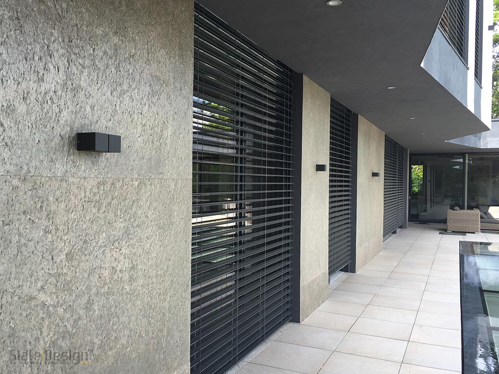 Egy látványos, rendkívül modern vonalvezetésű villa homlokzatburkolatának is hasonlónak szükséges lennie. Ezért a hatalmas épületen két, markánsan eltérő természetes palastruktúra is felkerült a homlokzatra – összesen mintegy 170 m2-en. A standard, 1220×610 mm-es táblaméretű Black LiteStone kőfurnér burkolatokat extra méretű, 2440×1220 mm-es Golden struktúrák egészítik ki a teraszon kialakított pazar medence szomszédságában.